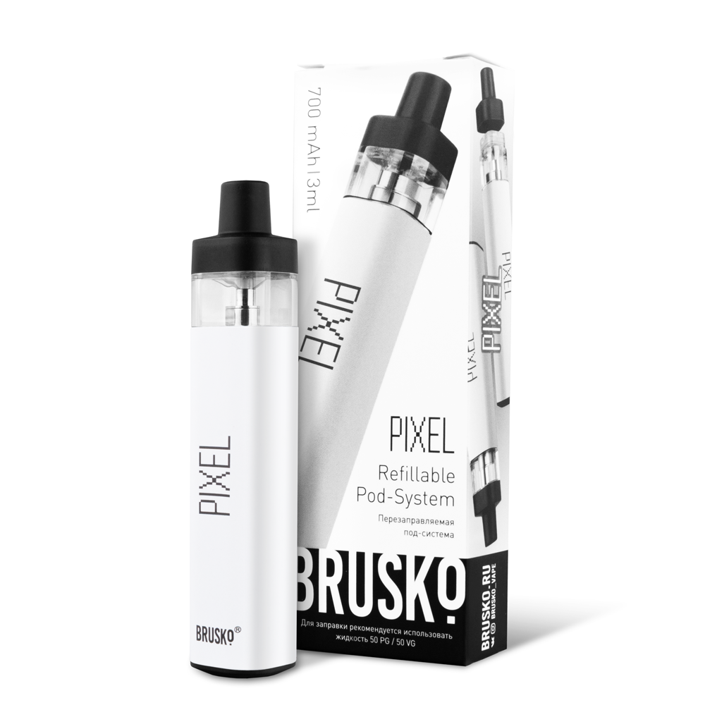 Перезаправляемая Под-Система Бруско Пиксель (Brusko Pixel) 700 mah, Белый - купить в Рыбинске